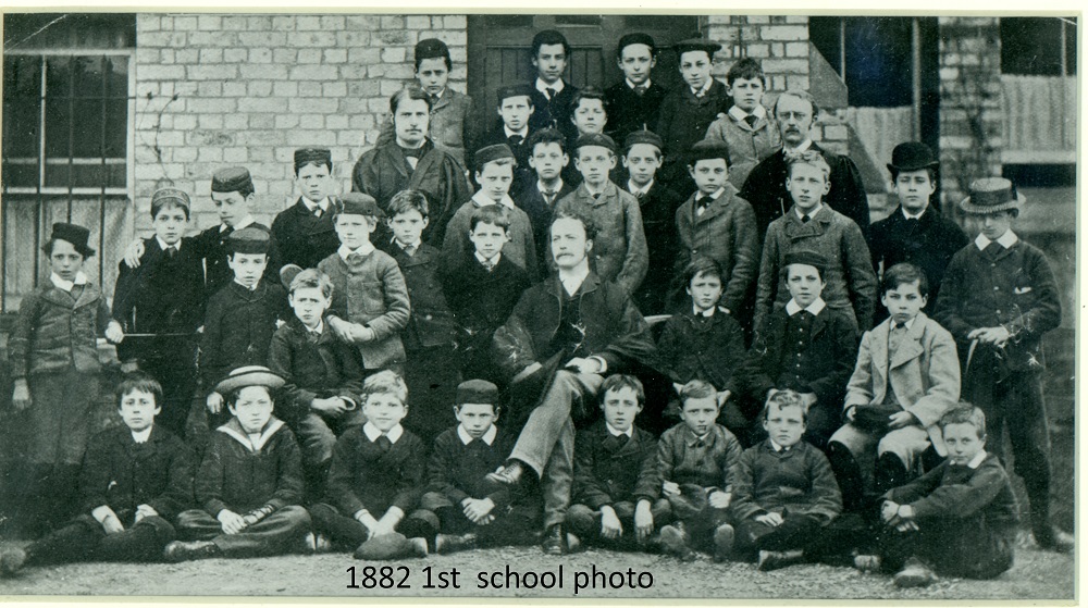 The clothing for the first 14 boys in 1877 probably had little sense of a uniform. However, in the 1882 School Photo uniform can be seen (Photo 1). Some smaller boys are still wearing their sailor suits, several with distinctive caps. Shorts that go down to the knee along with proper jackets are the main items.